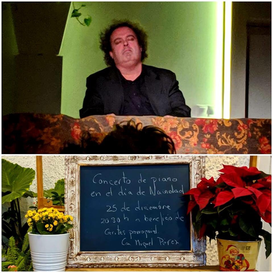 Un año más por Navidad he vuelto a la Parroquia Madre del Buen Consejo a llenar su atmósfera con mi música. Y como siempre suele pasar, esa energía me ha venido devuelta multiplicada. Este concierto he querido dedicárselo a mi amigo Miguel Romero Esteo, que recientemente nos dejó, y al que le encantaba mi música. Gracias a mis amigos y amigas de toda la vida, por la incondicionalidad, a mis amigos y amigas virtuales que hoy se han hecho de carne y hueso, a las personas que no conocía y a los que con tanto cariño se acercaron a felicitarme, y por supuesto, a Rafa, por ayudarme a aportar mi granito de arena en forma de música, a mi familia, por su eterno apoyo siempre, y a mi querida Belén, motor de mi inspiración desde que la conozco hace justo un año. Se os quiere.