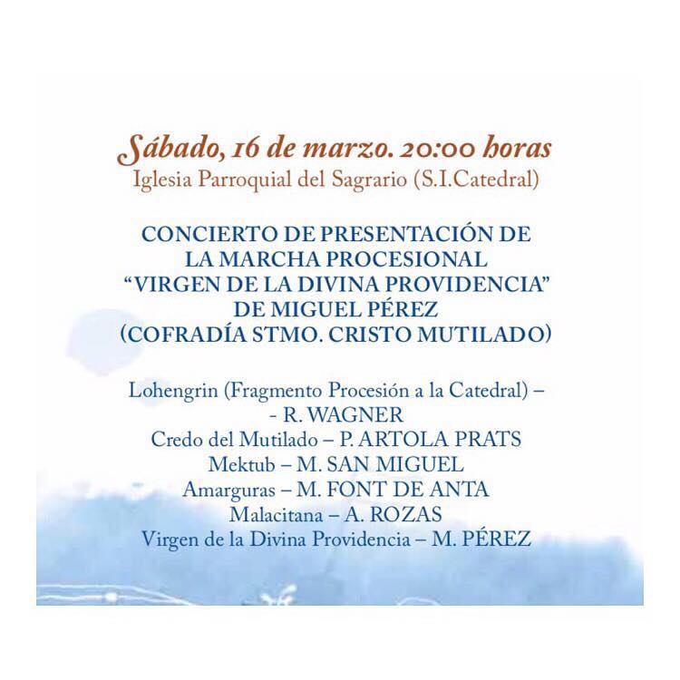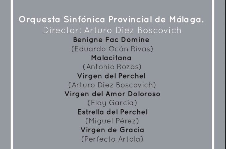 Repertorio que se interpretará en el concierto de la Banda Municipal de Música de Málaga para conmemorar el estreno de la marcha “Virgen de la Divina Providencia” de Miguel Pérez.