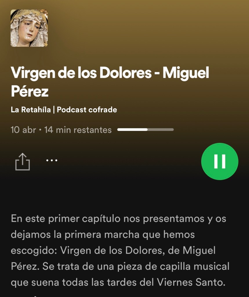 Gracias a los amigos de La Retahíla por dedicarme el primer capítulo de su podcast cofrade. Para escucharlo en Spotify pincha en la imagen.