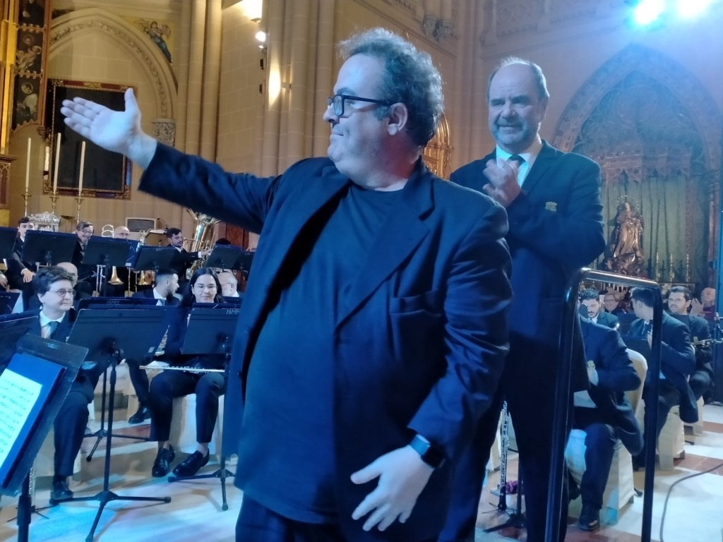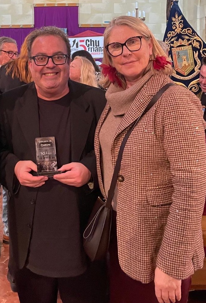 Todo comenzó con el conmovedor homenaje que me brindó la Banda de Música de Churriana en su concierto de Cuaresma. Recibir este reconocimiento a mi trayectoria y escuchar mis propias composiciones interpretadas con tanto mimo y respeto ha sido un regalo impagable. La banda sonó magníficamente, con un equilibrio perfecto en todas sus cuerdas y una cohesión impecable. Lo más inspirador fue la energía y el compromiso de sus músicos: jóvenes, pero con la madurez artística de quienes aman lo que hacen. Tocaban con una pasión contagiosa, combinando la disciplina con un entusiasmo genuino que llenaba el ambiente de vitalidad. “Estrella del Perchel”, “Bajo Palio” y “Esperanza Perchelera” cobraron vida en sus manos, pero el momento más especial llegó al final del concierto, cuando su director titular, Juan Miguel Muñoz Cabrera, me cedió la batuta para dirigir “Flor de San Julián”. Poder interpretar esta marcha con ellos fue un privilegio que me emocionó profundamente. Sentir su entrega y el calor del público en ese instante fue un regalo que guardaré para siempre en mi corazón.
