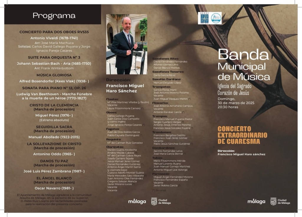 Así, llegué a tiempo para otro instante imborrable: la Banda Municipal de Málaga me regaló el estreno absoluto de mi nueva marcha “Cristo de la Clemencia”. Es una obra con un significado muy especial para mí. Cada nota, cada pausa y cada matiz llevan impreso un sentimiento profundo, un recuerdo, una historia que necesitaba ser contada a través de la música. No siempre es fácil traducir ciertas emociones en palabras, pero la música tiene el poder de hablar en su propio lenguaje, de resonar en quien la escucha de maneras que a veces ni siquiera podemos prever. Verla cobrar vida en un escenario tan solemne como la Iglesia del Sagrado Corazón de Jesús fue un momento que guardaré para siempre.