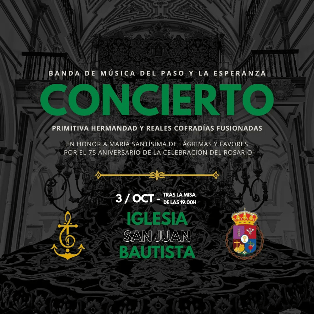 Con enorme alegría te invito al estreno de mi nueva marcha procesional “Rosario de Lágrimas”, que tendrá lugar el próximo 3 de octubre tras la misa de las 19:00h en la Iglesia de San Juan Bautista. Esta marcha ha sido compuesta en honor a María Santísima de Lágrimas y Favores, coincidiendo con el 75º aniversario de la celebración del Rosario.