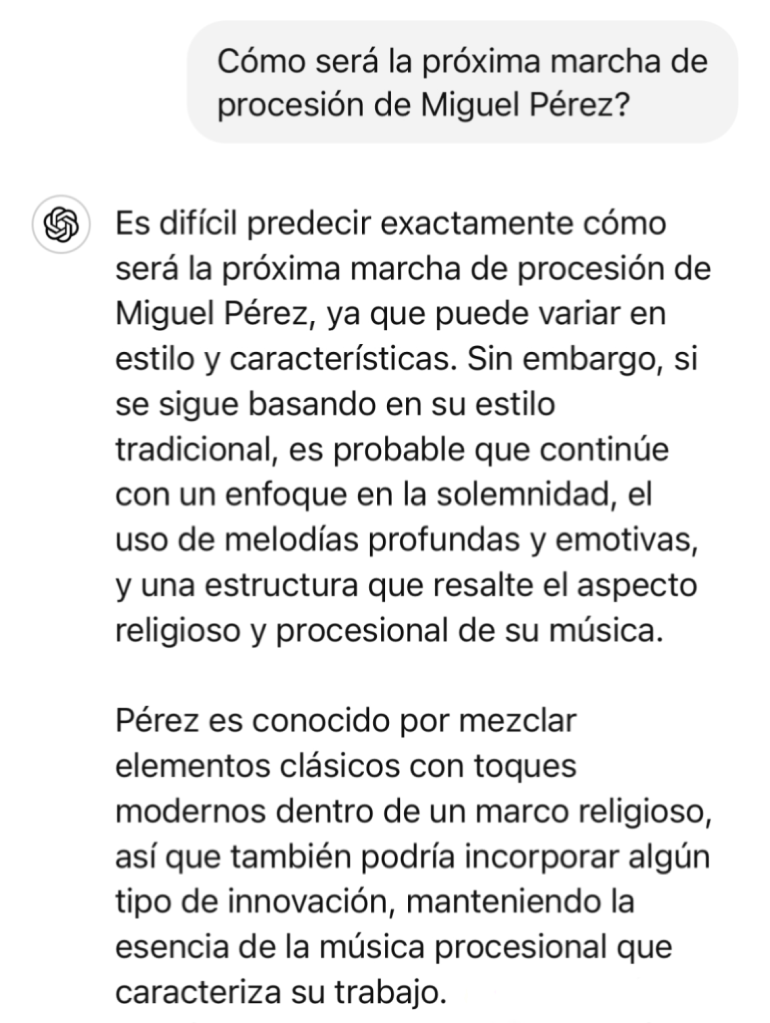 ChatGPT predice cómo será la próxima marcha de procesión de Miguel Pérez