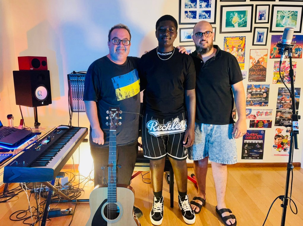 Grabando con Papa Bocar Ngom AW (participante de Majotalent 2023) en el estudio de grabación de La Nueva Saga